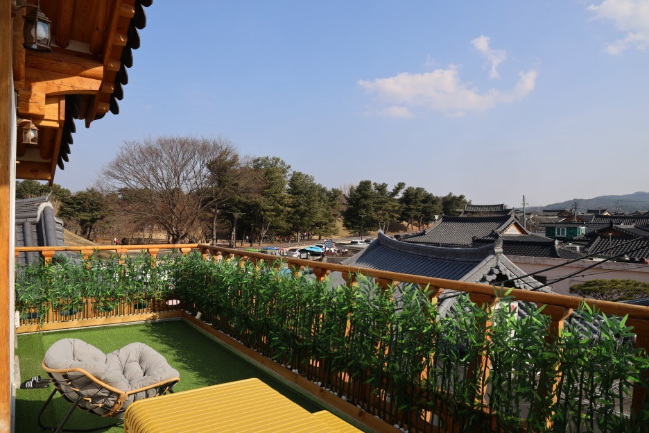 2층 숙소에 머물게 되면, 야외 베란다에서 대릉원과 천마총을 한눈에 담을 수 있습니다.