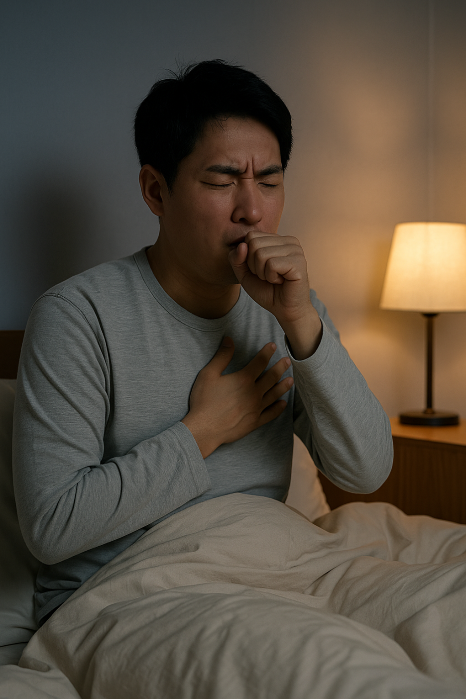 - 특징: 맑은 가래 동반, 밤에 심해짐
