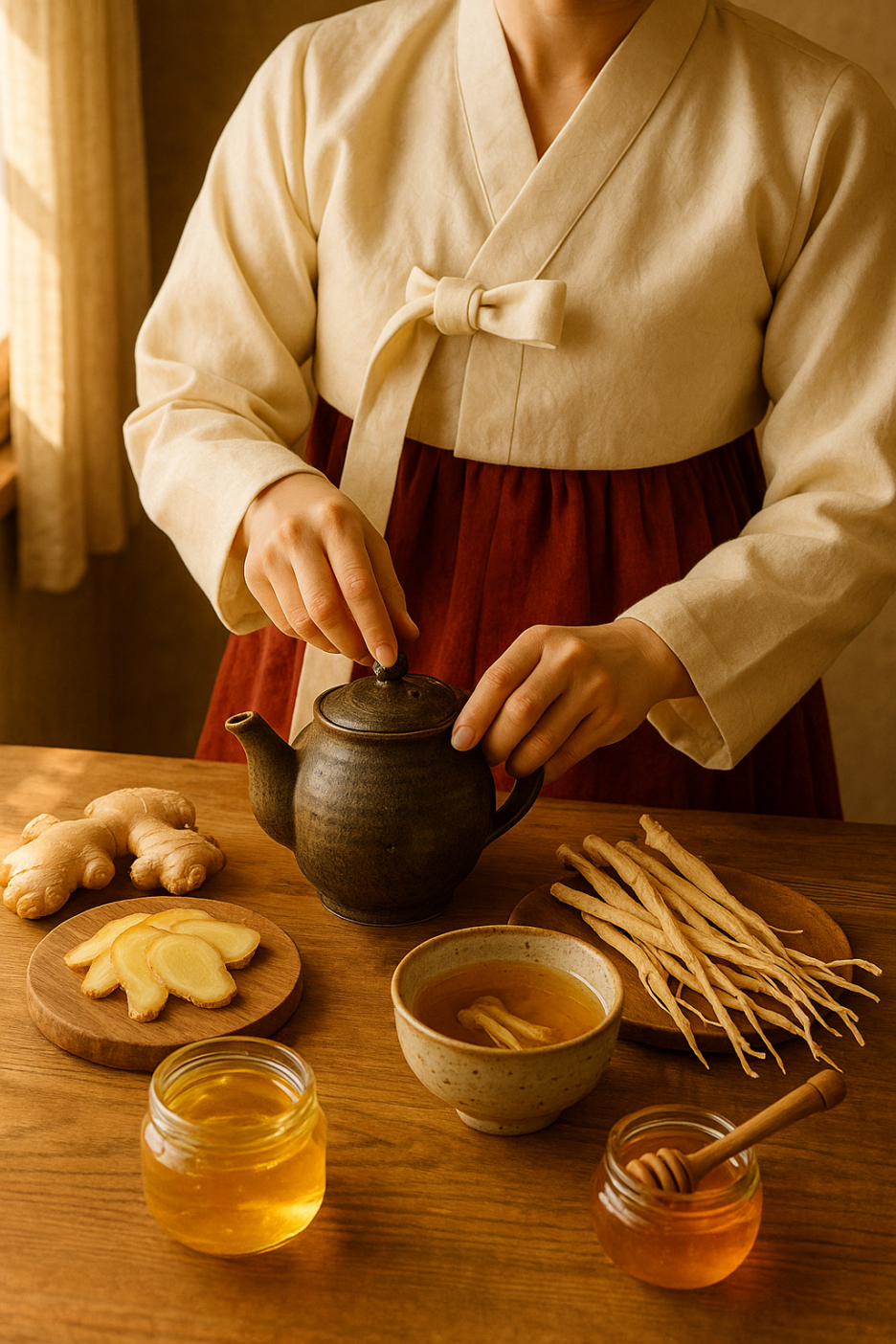 생강차, 도라지차, 배즙 등은 기관지를 부드럽게 해주고
