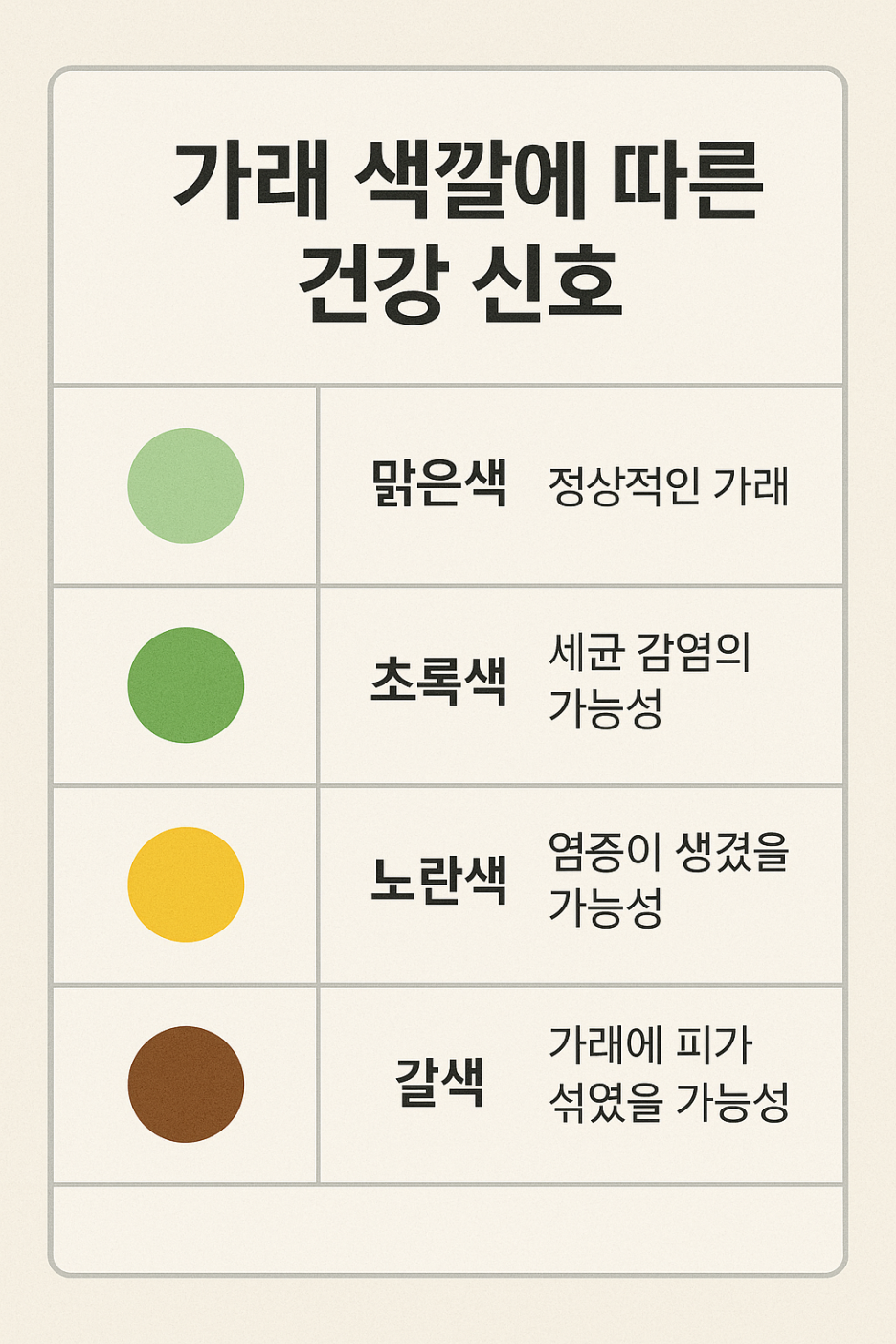 - 맑은 가래: 정상 혹은 초기 감기