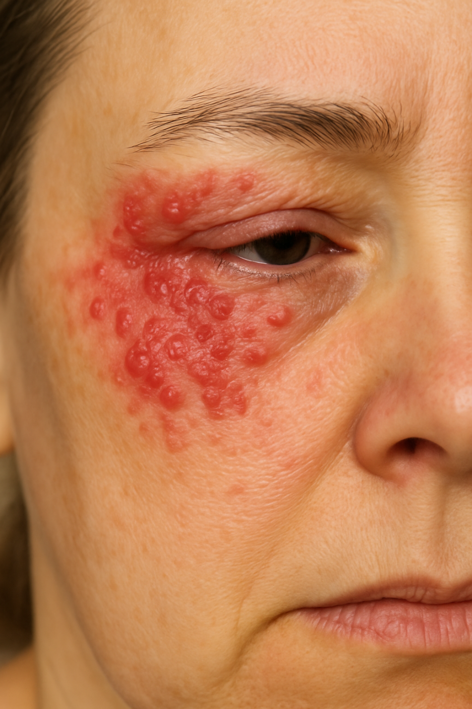 눈 주위에 따끔거림과 통증이 느껴지면서 피부에 이상한 발진이 올라왔다면