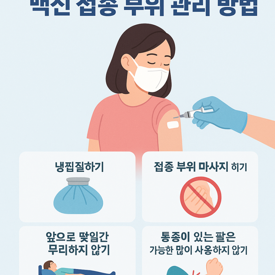 접종 부위가 자극을 받으면 통증이나 부종이 심해질 수 있기 때문입니다.