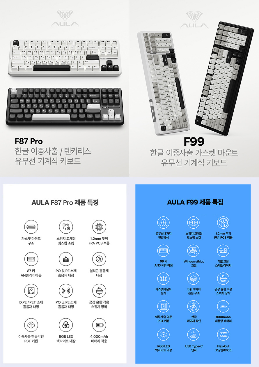 - F99 Pro : F99의 업그레이드 버전으로, RGB LED 백라이트와 더 나은 스위치 성능을 제공합니다.