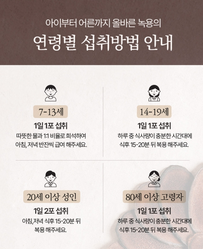 이 제품은 연령대별 섭취 방법이 안내되어 있어