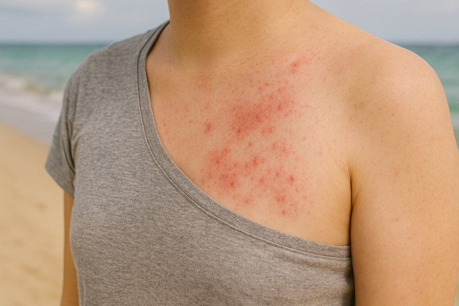 최근 언론 보도에 따르면 바닷가에서 바다 물벼룩에 노출된 뒤 다음과 같은 증상이 보고되었습니다.
