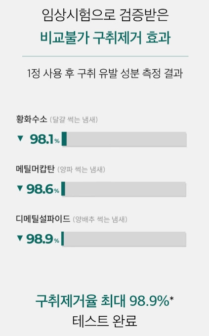 임상시험으로 구취 제거율 98.9%를 입증했고,