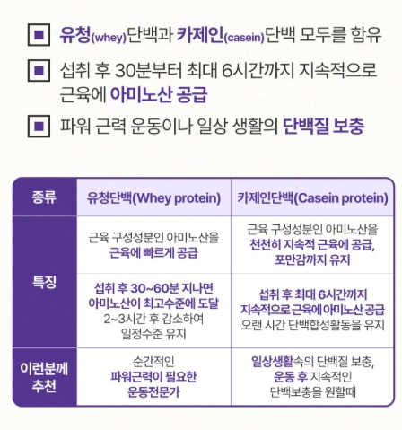 우유 단백질은 카제인 단백과 유청 단백을 함께 함유해
