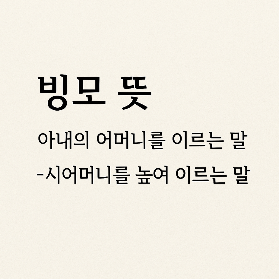결국 ‘빙모’라는 말은 단순한 호칭을 넘어서, 사위가 장모님에게 가져야 할 존중의 마음을 상징하는 단어가 아닐까 싶습니다.