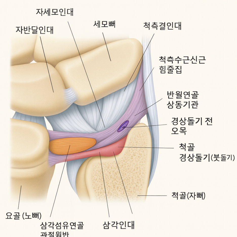 손목의 안정성을 유지하고 충격을 흡수하는 역할을 합니다.