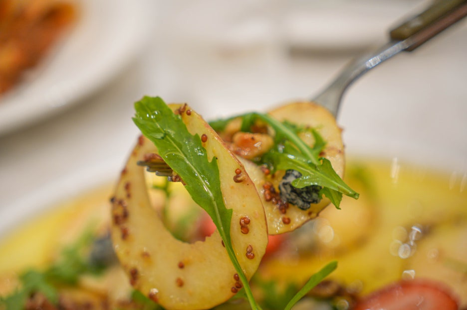 청사과와 고르곤졸라 치즈, 호두, 크랜베리, 루꼴라가 조화를 이루는 시그니처 샐러드.