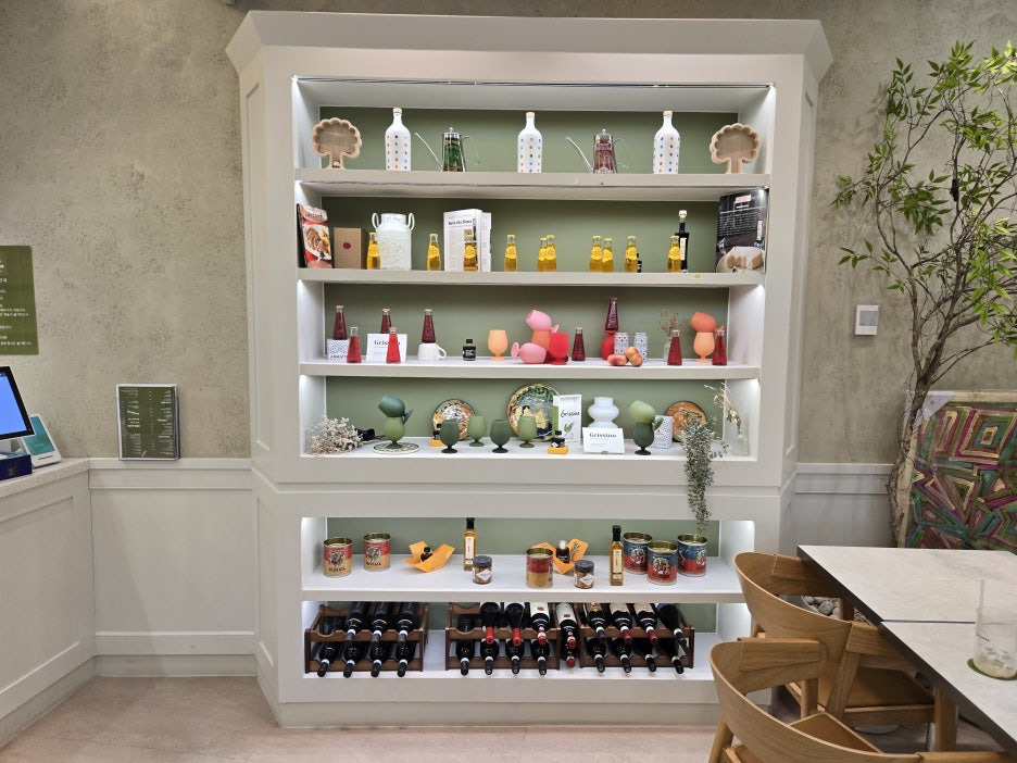 그리시노는 따뜻한 컬러와 올리브 톤 소품으로 꾸며져