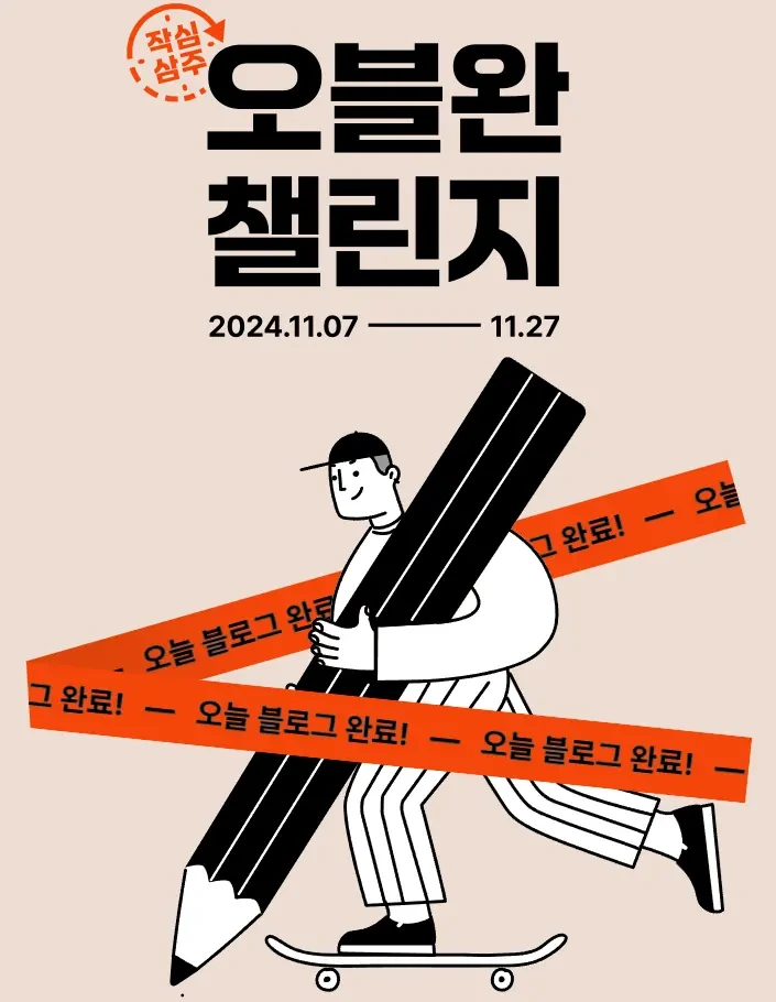오블완챌린지는 2024년 11월 7일부터 11월 27일까지 진행되는 21일간의 글쓰기 챌린지입니다. 이 챌린지는 매일 자신의 블로그에 글을 올리면서 글쓰기 습관을 기르고, 새로운 아이디어를 발전시키는 기회를 제공합니다.