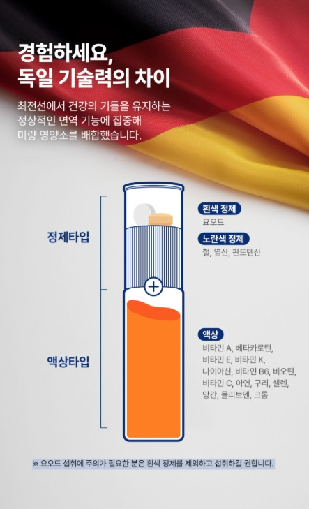 액상에는 지용성 비타민, 정제에는 수용성 비타민과 미네랄이 담겨 있어