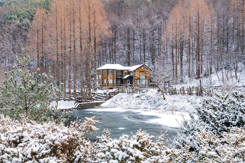 온빛자연휴양림은 탄소상쇄 숲으로, 청정한 자연환경을 자랑합니다. 이곳은 메타세쿼이아 나무가 우거진 숲과 잔잔한 호수가 어우러져 있어, 방문객들에게 평화로운 분위기를 제공합니다. 특히, 이곳의 노란 건물은 많은 사진작가와 여행객들에게 인기 있는 포토존으로 알려져 있습니다.