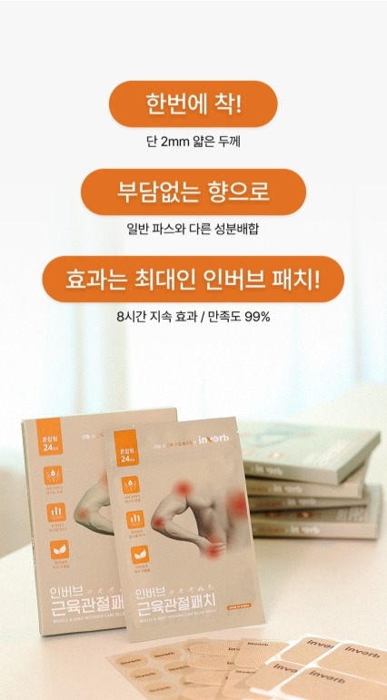 근육과 관절 건강 관리가 필요하다면 인버브 패치를 활용해 보세요.
