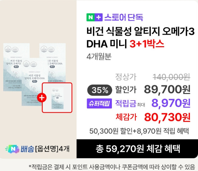 3+1 임산부 오메가3 식물성 알티지 DHA 60캡슐은