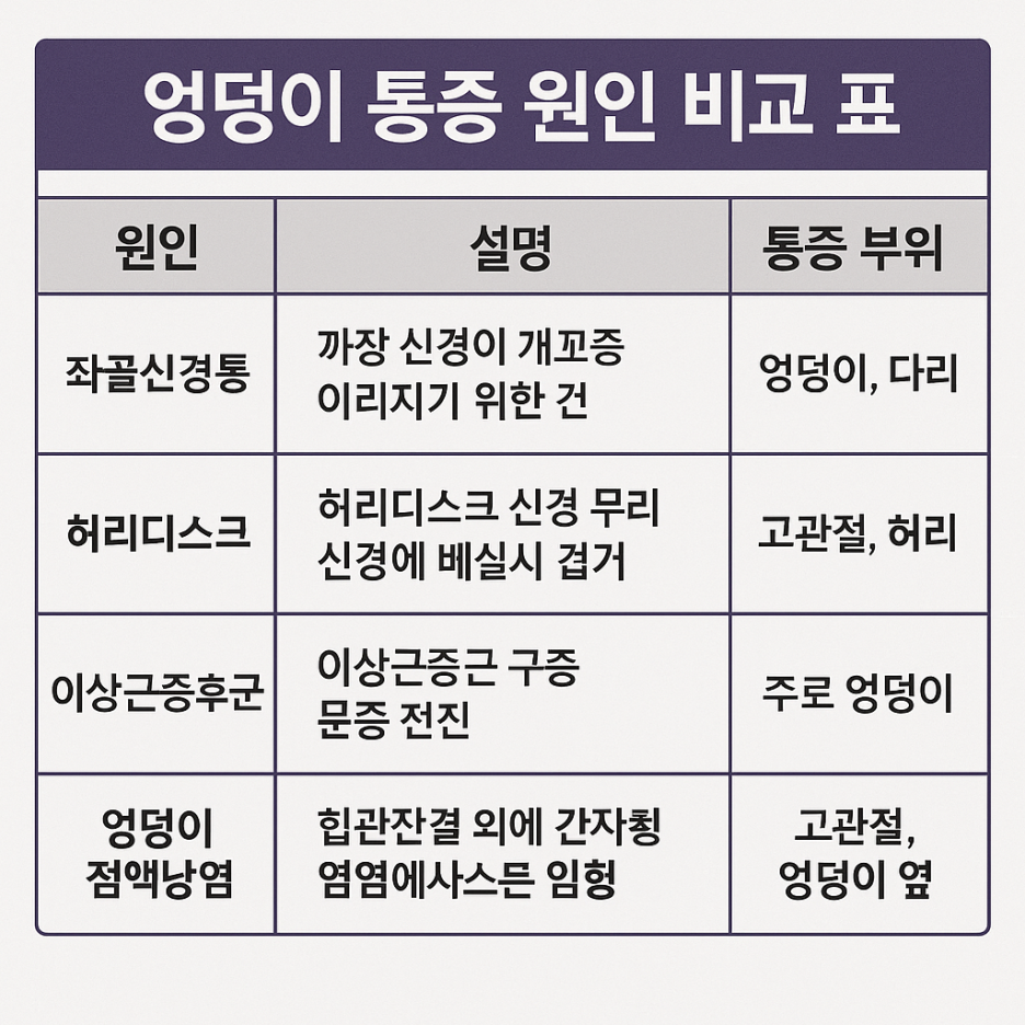 특히 딱딱한 의자에 오래 앉아 있는 습관, 자전거 타기, 과도한 운동, 또는 좌골 부위 외상이 주요 원인이 될 수 있습니다.