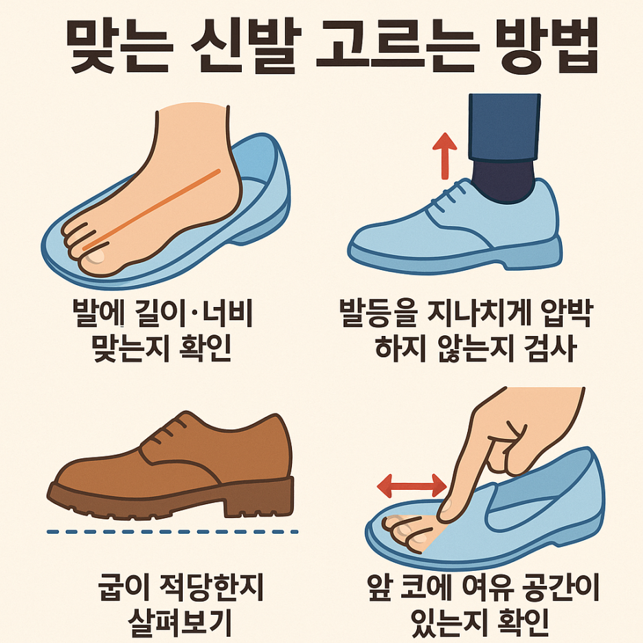 굽이 높거나 앞이 뾰족한 신발은 피하세요.