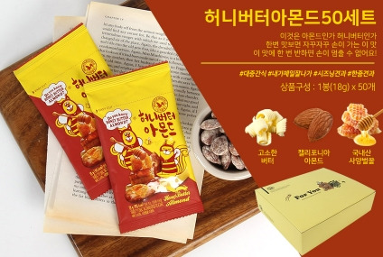 - 달고나·허니버터 아몬드 : 남녀노소 모두 좋아할 달콤한 스낵형 견과