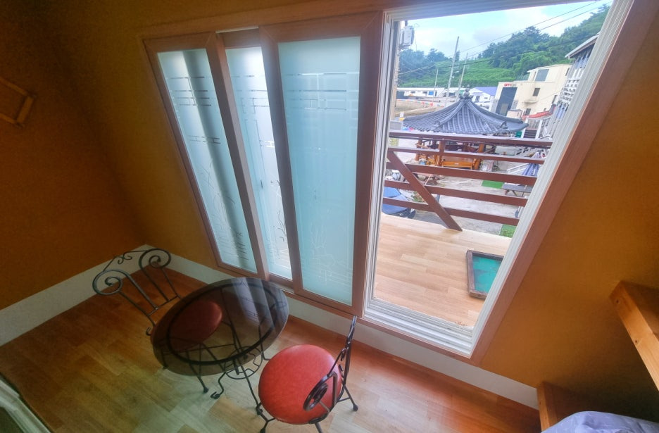 통영휴펜션의 가장 큰 매력 중 하나는 넓고 쾌적한 대형 테라스입니다.