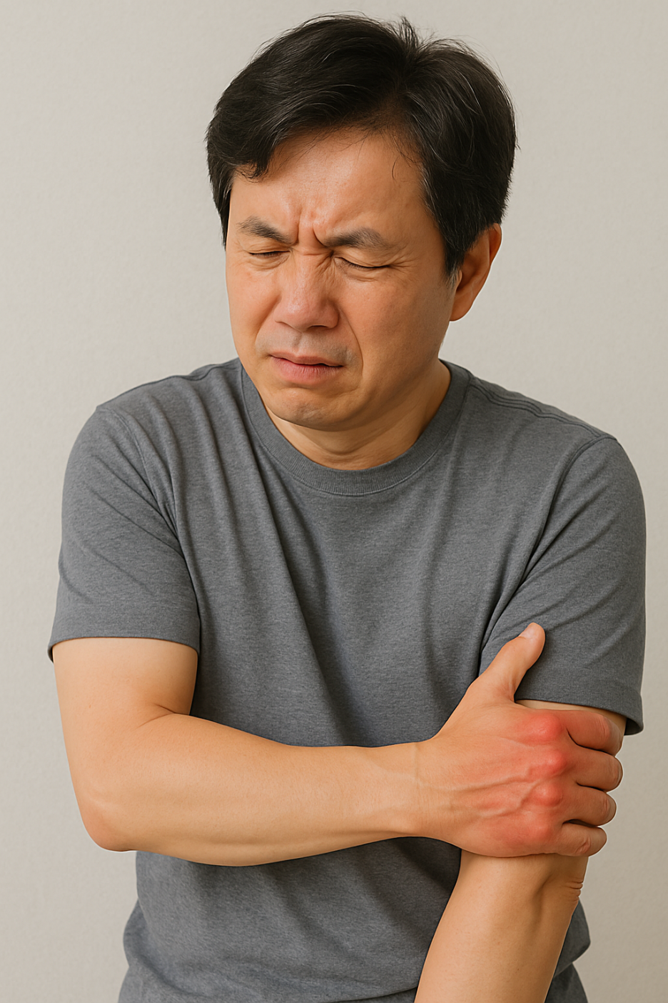팔뚝은 척수신경과 연결된 부위 중 하나로, 대상포진이 발병하기 쉬운 부위 중 하나입니다.