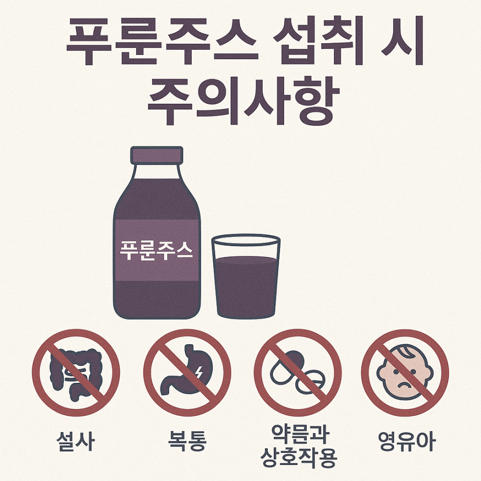 푸룬주스는 좋은 점이 많은 음료지만, 몇 가지 주의할 점도 있습니다.