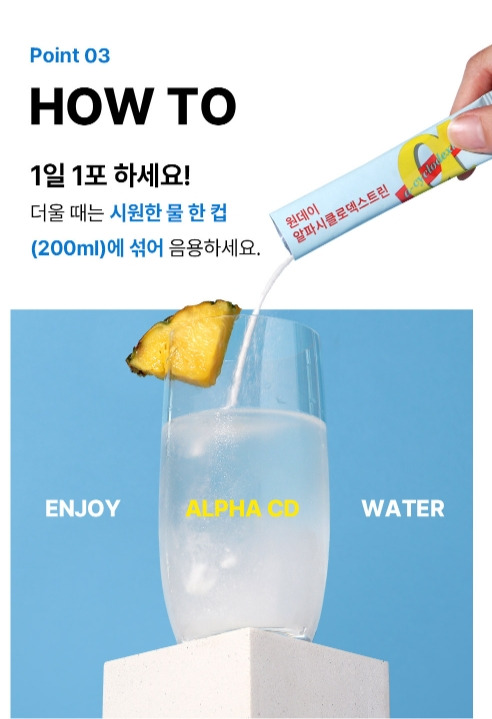 상큼한 파인애플맛 원데이 알파CD로 하루 한 포 가볍게 리셋하세요.