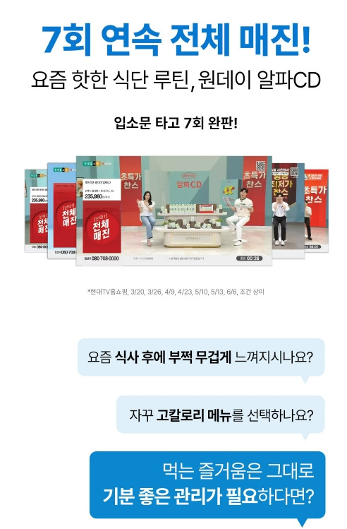 홈쇼핑에서 7회 연속 완판,