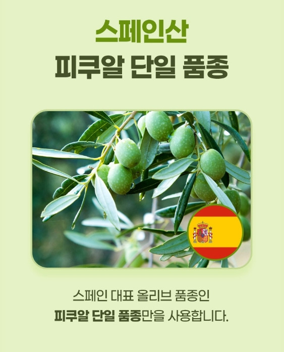 스페인 안달루시아 하엔 지역에서 자란 고품질 올리브만 사용하고,