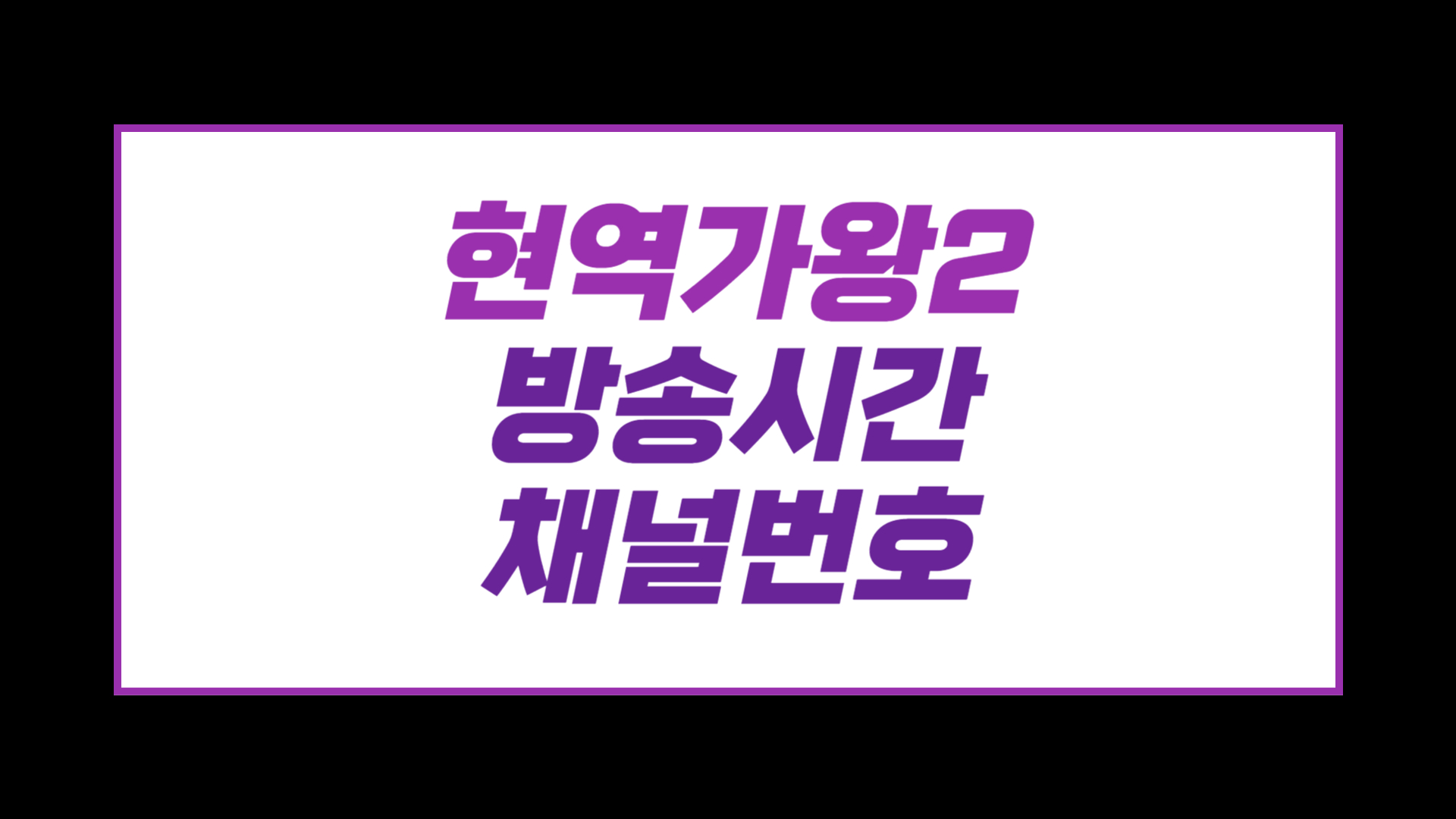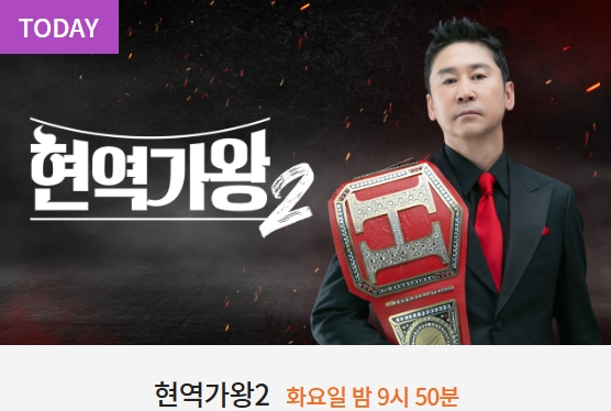 현역가왕2는 MBN에서 2024년 11월 26일(화) 오후 09:50부터 방송됩니다. 이후에는 MBN 공식 홈페이지에서 다시 볼 수 있으며, 시청자 게시판, TV 명장면, 현역 34명 소개, 공지사항 등 다양한 정보를 확인할 수 있습니다.