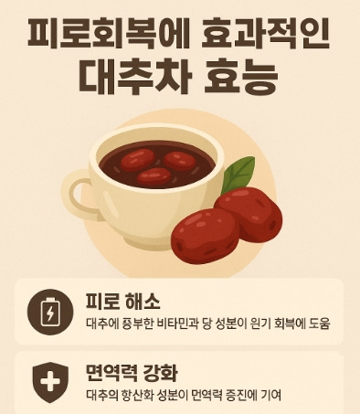 피로회복, 불면증 개선, 면역력 강화 등 다양한 건강 이점이 있는 대추차의 효능을 상세히 알아보고,