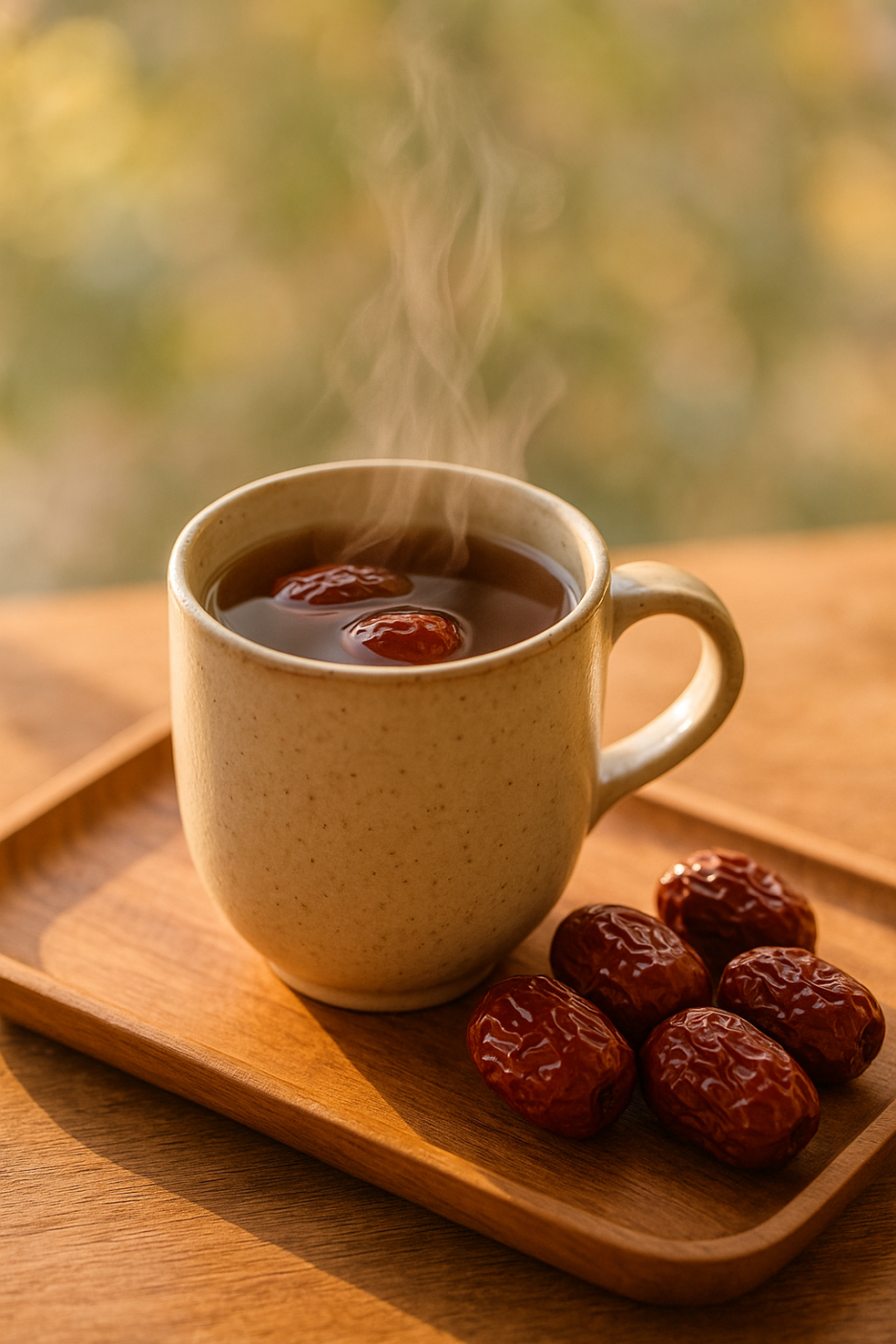 특히 생리 전후 몸이 차가워지기 쉬운 여성들에게는 대추차가 매우 유익한 차입니다.