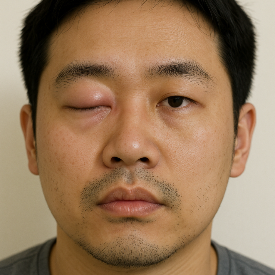 - 눈꺼풀 한쪽이 붓고 빨갛게 변함