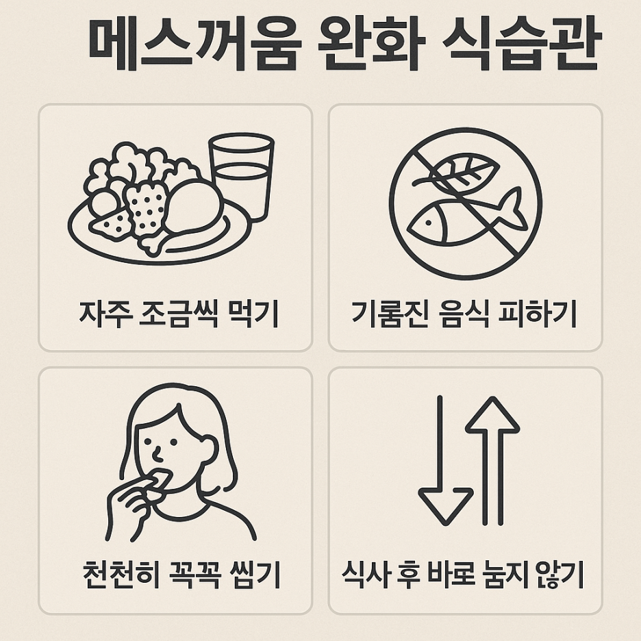 - 생활 관리: 과식·기름진 음식 피하기, 규칙적 식사, 충분한 수면