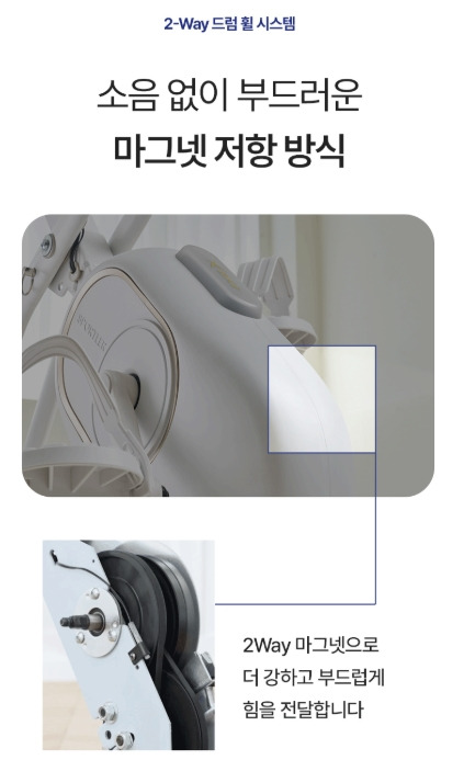 하지만 숀리 엑스바이크는 2-Way 드럼 휠 마그넷 저항 방식을 적용하여 소음 걱정이 전혀 없습니다.