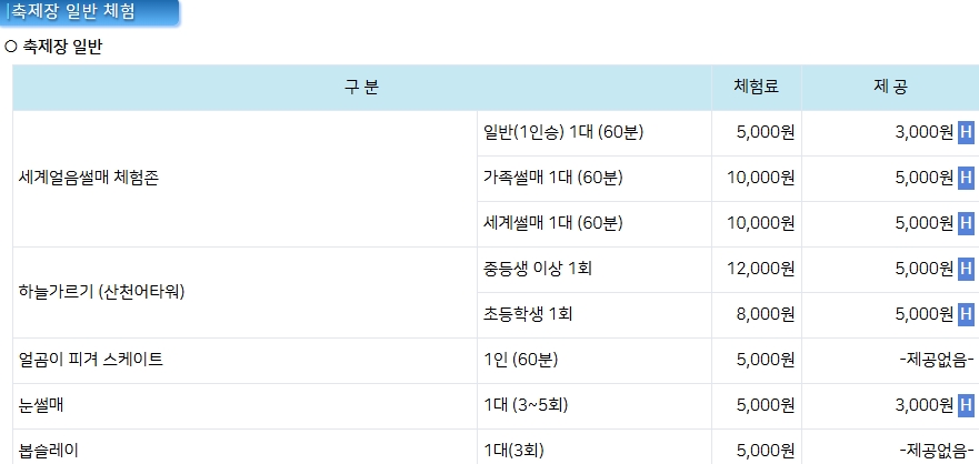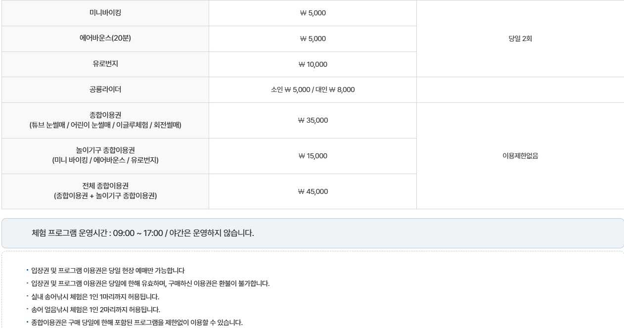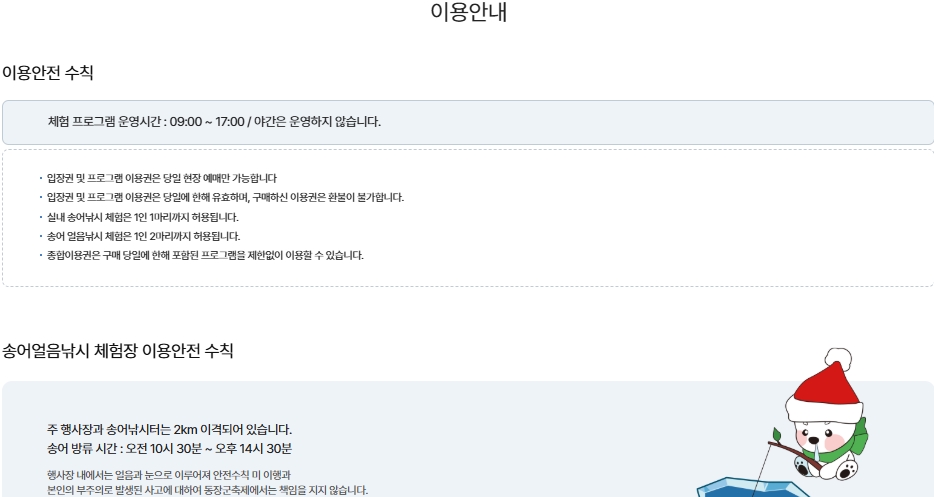 - 얼음썰매는 결빙시가능(이용료별도,빙질상태 전화문의)