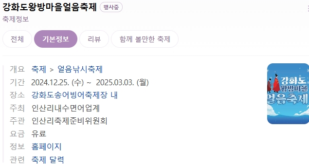 강화도 왕방마을 얼음축제 위치 지도 보기