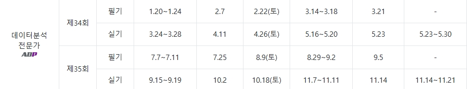 2025 ADP 데이터분석 전문가 자격증 시험 일정은 다음과 같다.