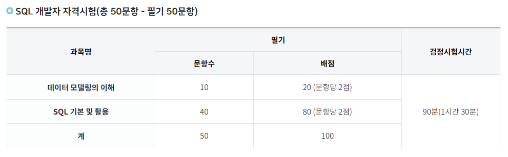 SQLD 시험은 여러 과목으로 나뉘어 있으며, 시험의 주요 항목은 다음과 같습니다: