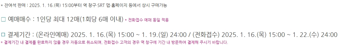 2025 설날 SRT 예매 시 유의사항