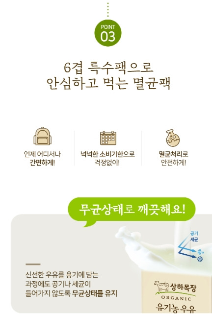 행복한 유기농 젖소에서 짜낸 상하목장 유기농 우유
